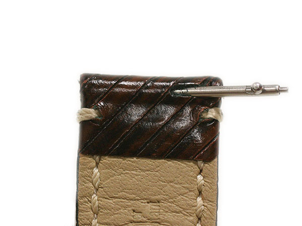 穴の開いてないベルトにバネ棒をセットするにはまず穴をあけて