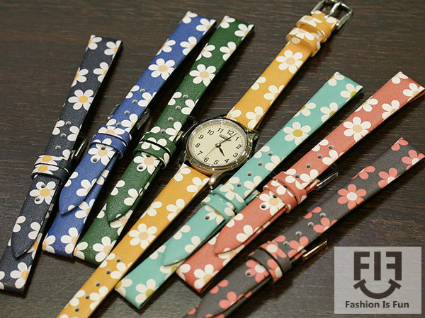 【バンビ】FIF デイジープリント クリップタイプ レディース 合成皮革 時計ベルト 時計バンド